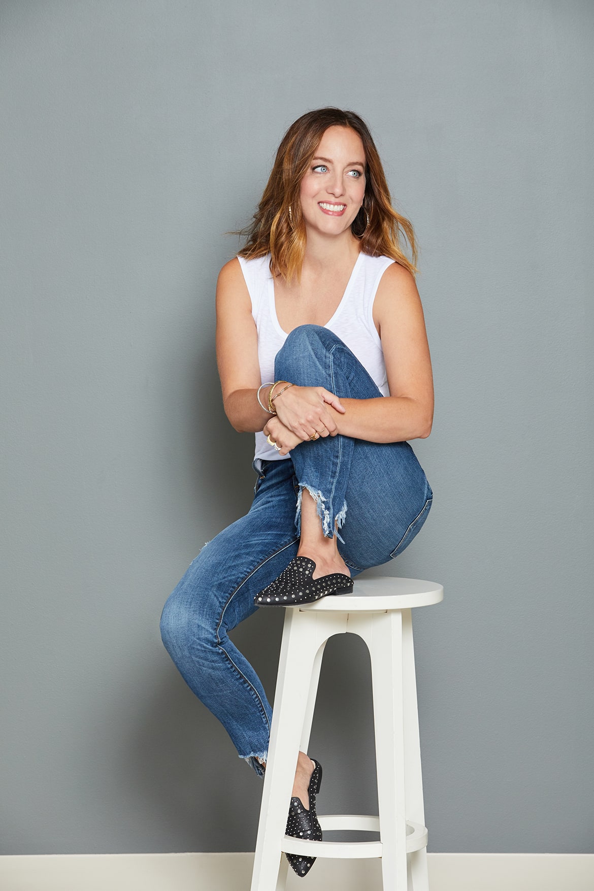 Hudson Barbara Jeans | Michael Stars Fitted Tank | Kristen Cavallari Stud Loafers